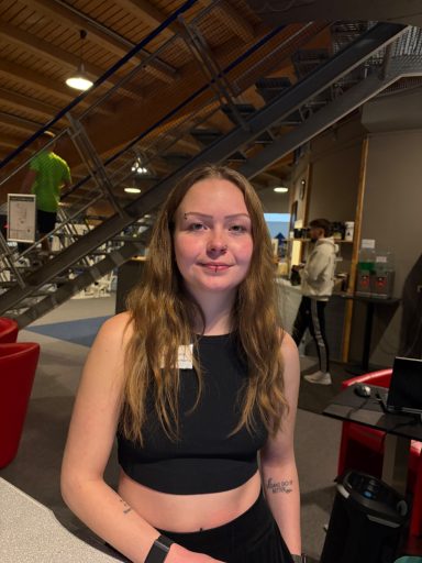 Mitarbeiterin an der Theke und Aufsicht in der Trainingsfläche.