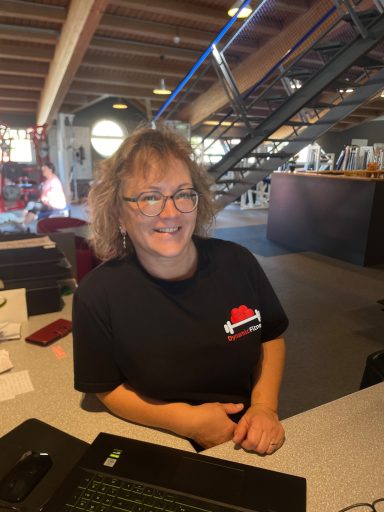 Mitarbeiterin an der Theke und in der Trainingsfläche.